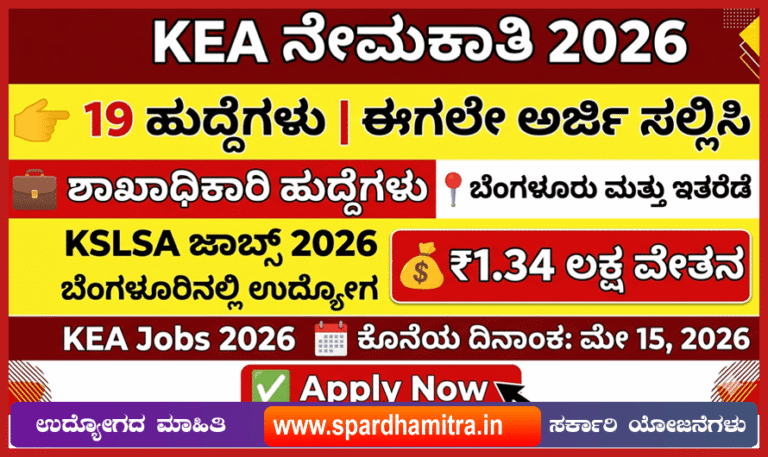 KEA KSLSA Vacancy 2026 – ಕರ್ನಾಟಕ ಪರೀಕ್ಷಾ ಪ್ರಾಧಿಕಾರ (KEA) ವತಿಯಿಂದ ಕರ್ನಾಟಕ ರಾಜ್ಯ ಕಾನೂನು ಸೇವೆಗಳ ಪ್ರಾಧಿಕಾರ (KSLSA) ನಲ್ಲಿ ಖಾಲಿ ಇರುವ ಶಾಖಾಧಿಕಾರಿ…