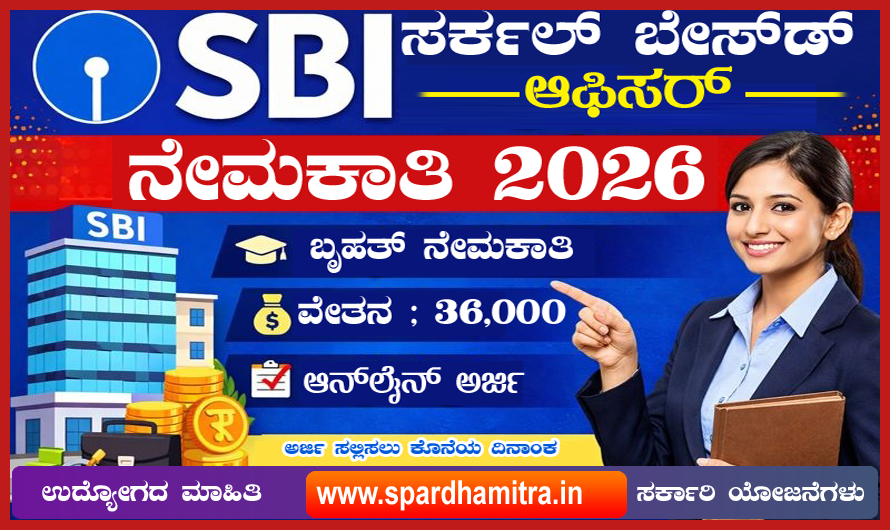 SBI Circle Based Officer Recruitment 2026 – ಭಾರತದ ಅತಿ ದೊಡ್ಡ ಸಾರ್ವಜನಿಕ ಕ್ಷೇತ್ರದ ಬ್ಯಾಂಕ್ ಆಗಿರುವ ಸ್ಟೇಟ್ ಬ್ಯಾಂಕ್ ಆಫ್ ಇಂಡಿಯಾ (SBI) ಸಂಸ್ಥೆಯು ಸರ್ಕಲ್ ಬೇಸ್ಡ್ ಆಫಿಸರ್ಗಳು (CBO) ನೇಮಕಾತಿ 2026 ಅಧಿಸೂಚನೆಯನ್ನು ಪ್ರಕಟಿಸಿದೆ. ಈ ನೇಮಕಾತಿ ಮೂಲಕ ವಿವಿಧ ಸರ್ಕಲ್ಗಳಲ್ಲಿ ಅಧಿಕಾರಿ ಹುದ್ದೆಗಳಿಗೆ ಅರ್ಹ ಅಭ್ಯರ್ಥಿಗಳಿಂದ ಆನ್ಲೈನ್ ಮೂಲಕ ಅರ್ಜಿಗಳನ್ನು ಆಹ್ವಾನಿಸಲಾಗಿದೆ. ಈ ಲೇಖನದಲ್ಲಿ SBI CBO ನೇಮಕಾತಿಗೆ ಸಂಬಂಧಿಸಿದ ಎಲ್ಲಾ ಪ್ರಮುಖ ಮಾಹಿತಿಯನ್ನು ಸರಳವಾಗಿ ವಿವರಿಸಲಾಗಿದೆ.